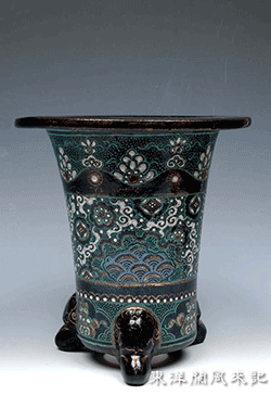 [2514] 縄縁一角足 竹林猛虎図万年青鉢